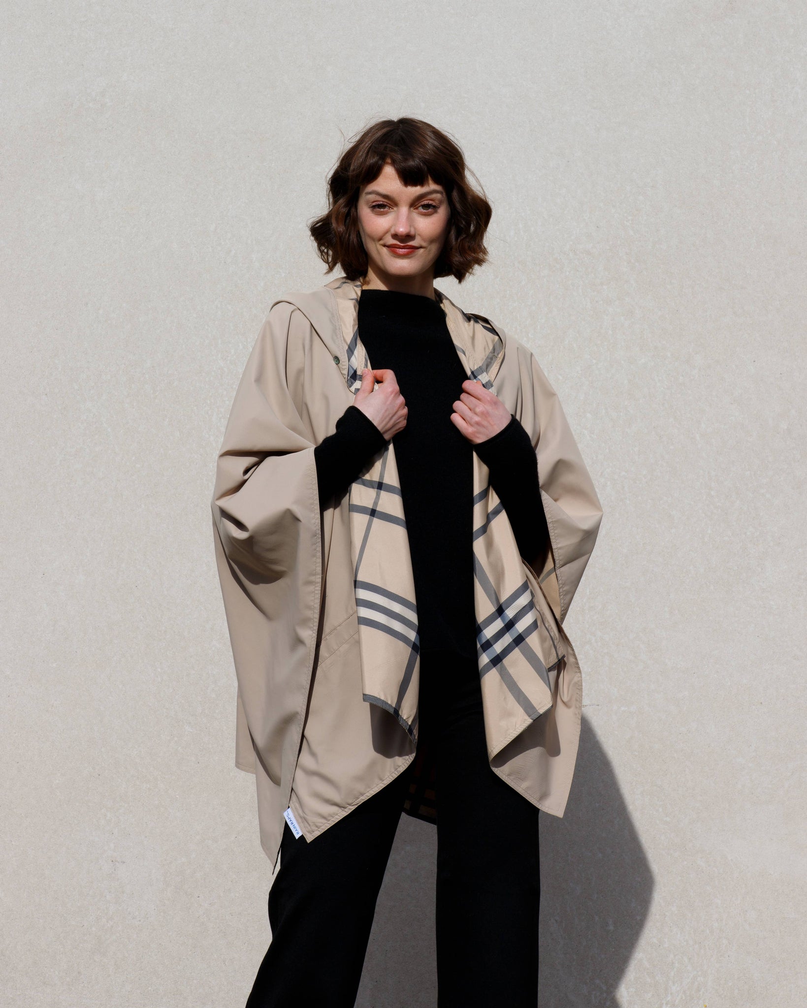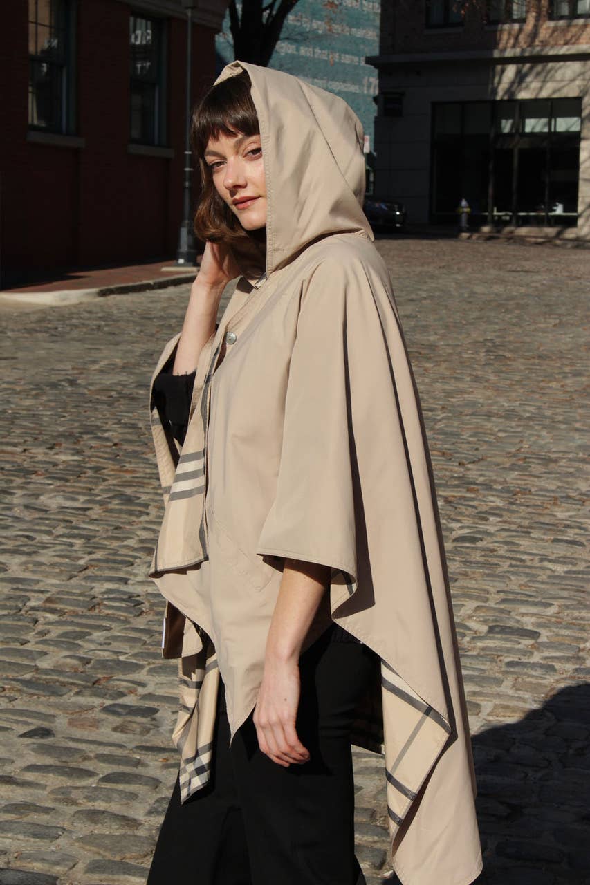 The RAINRAP is a chic, lightweight, and water-repellent wrap designed for women who want to stay dry in style. Reversible and packable, it combines the elegance of a pashmina with the practicality of modern women’s rainwear. Perfect for travel, commuting, or everyday use, the RAINRAP drapes effortlessly over any outfit — offering a fashionable alternative to bulky rain jackets or ponchos. Black paired with olive interior makes this wrap ideal for neutral, everyday looks.