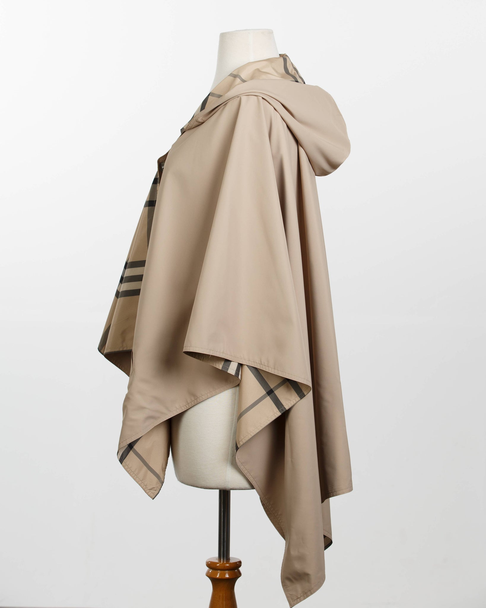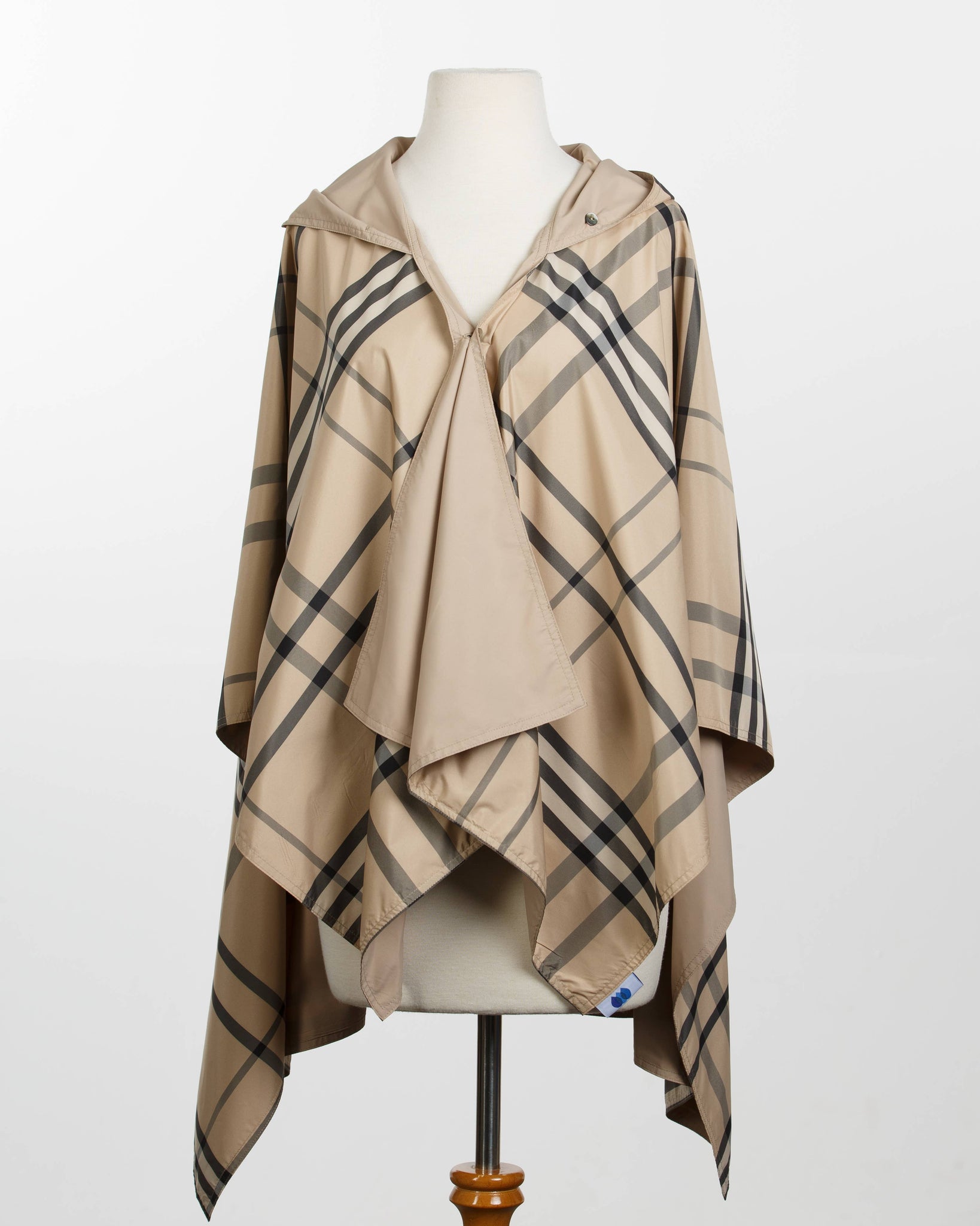 The RAINRAP is water-repellent, reversible, hooded, lightweight, fast-drying, has two shell buttons, a concealed magnetic closure, pockets, and easy to store in its matching travel pouch. The RAINRAP is one size fits most, made of 100% polyester treated for water repellency, and measures 25" from the neckline to the back hem. The width is 50", and it weighs 8 ounces. The pouch size is 10" x 8". Machine wash on cold, gentle cycle. Hang to dry or dry on a delicate cycle. Do not dry clean. Do not iron.