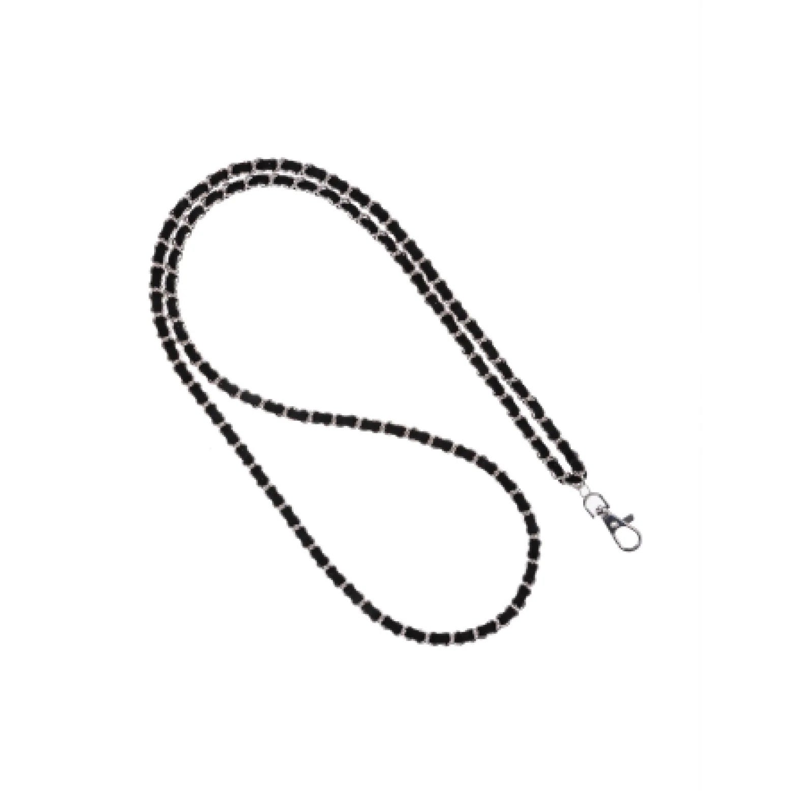 Silver Plated Crossbody Phone Chain with 100% Black Suede Woven Throughout. With Phone Chains this chic, there has never been a more convenient, lightweight, and fashionable way to keep your phone with you; hands-free.