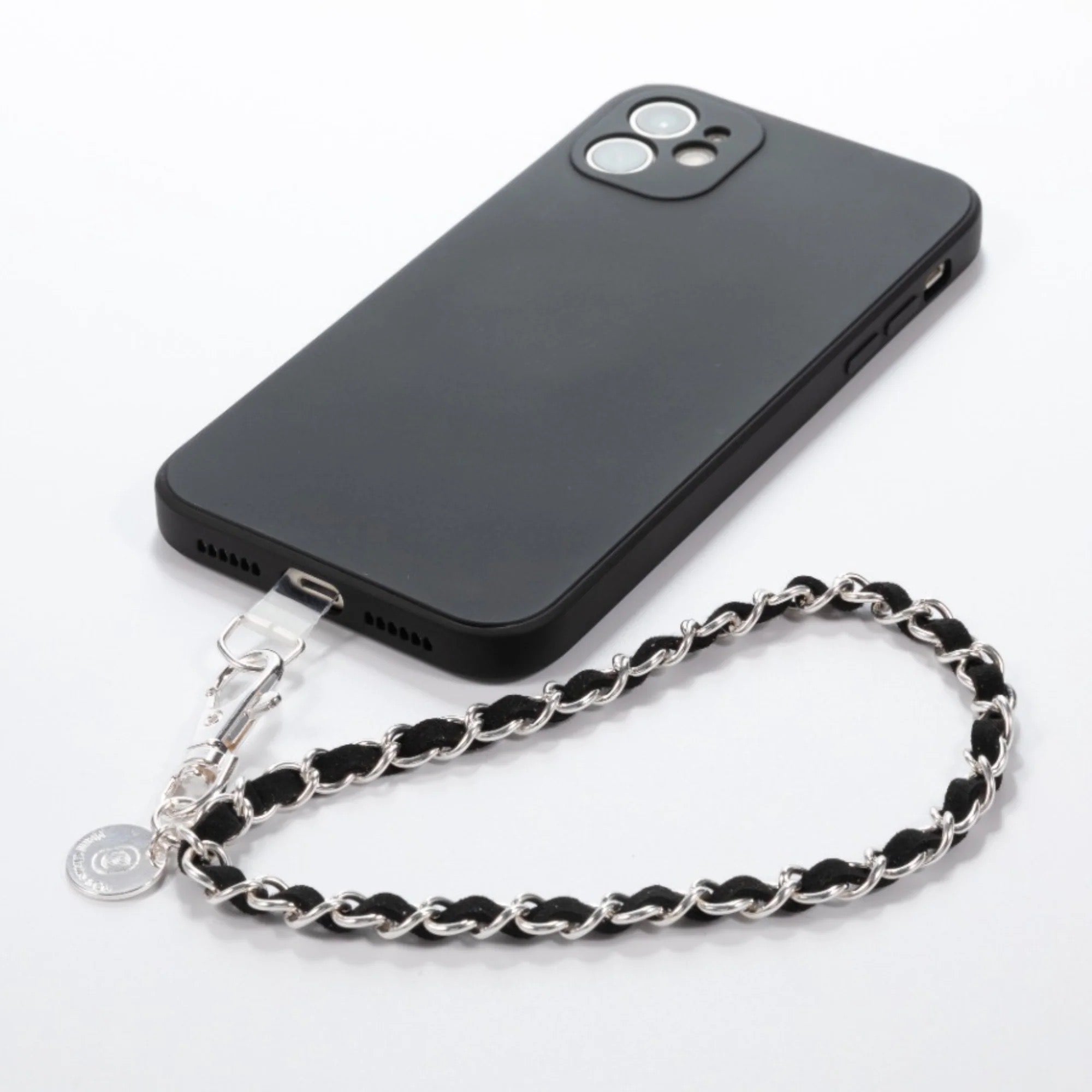 Phone Wristlet featuring Silver Plated Chain w/ 100% Black Suede Woven Throughout. Turn your phone into a wearable accessory that keeps you hands-free... think of it as a bracelet for your cell phone!
