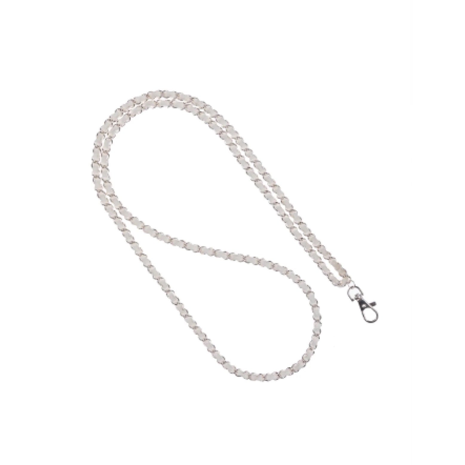 Silver Plated Crossbody Phone Chain with 100% White Suede Woven Throughout. With Phone Chains this chic, there has never been a more convenient, lightweight, and fashionable way to keep your phone with you; hands-free.