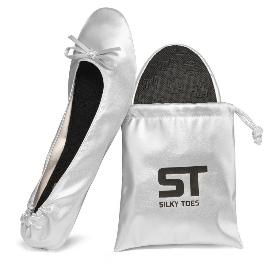 It's the ideal wedding party favor idea, foldable flats that are elegant and oh so comfortable. Delight your guests with this practical wedding party favor flat. They will kick off those high heels without worrying about dancing barefoot or ruining a pedicure. Furthermore, each wedding flat is designed to perfection. So what is it that makes this wedding party favor flat top? For starters, each pair comes in its own drawstring bag. Simply let every dancer grab a pouch. Of course, the comfort mentioned previously plays a big role. There's nothing like kicking off those high heels and dancing the night away in slipper shoes. Ah, the bliss! Additionally, elastic in the back ensures that the flat slippers stay comfortably on throughout the night. After all, we firmly believe that a good shoe is the one you forget is even there. Let's keep the dance floor full through the night! This is one party favor every guest at your wedding will absolutely love!