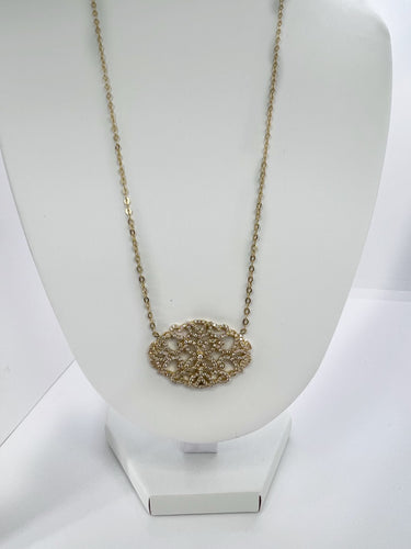 18K Yellow Gold and Diamond Vintage Oval Pendant Necklace